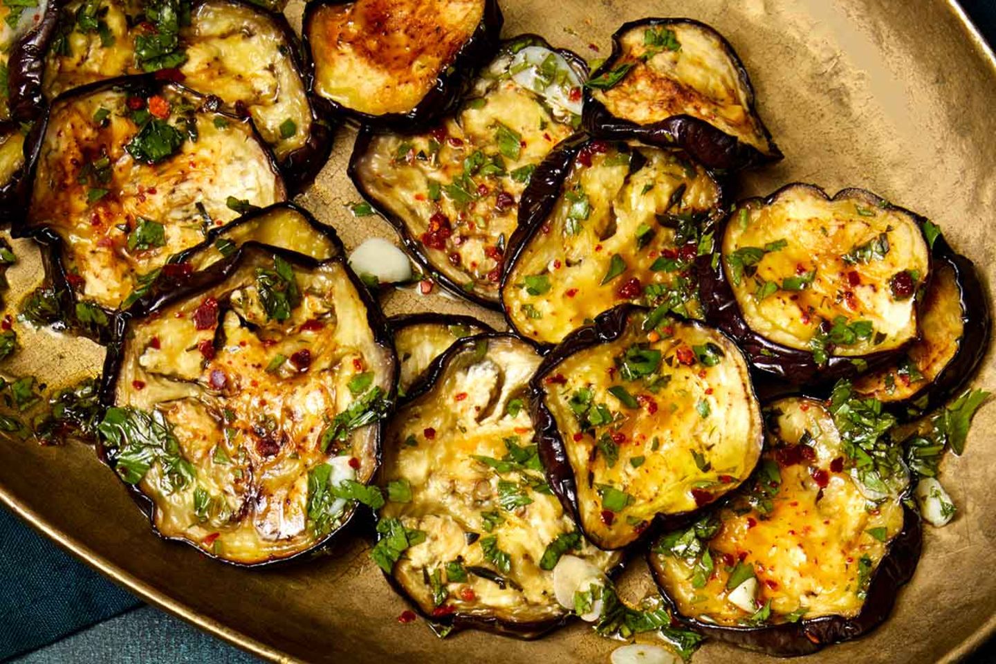 • Gebratene Auberginen mit Knoblauch
