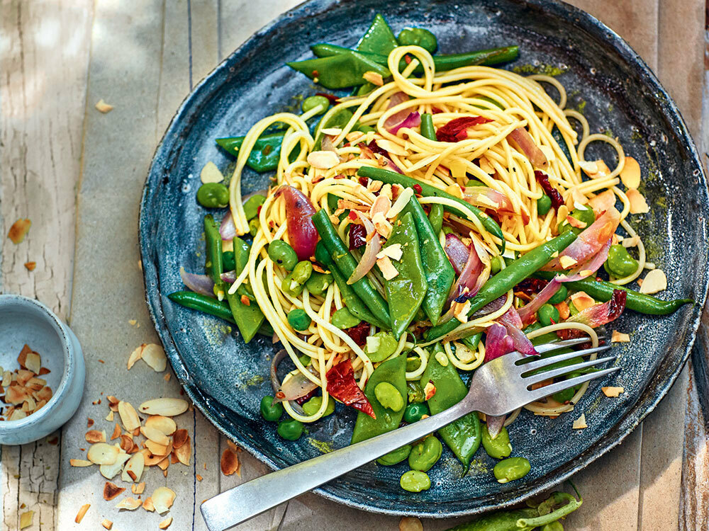 - Grüner Bohnensalat mit getrockneten Tomaten (15 Minuten, einfach): Perfekt für den Sommer, erfrischend und in Windeseile zubereitet.