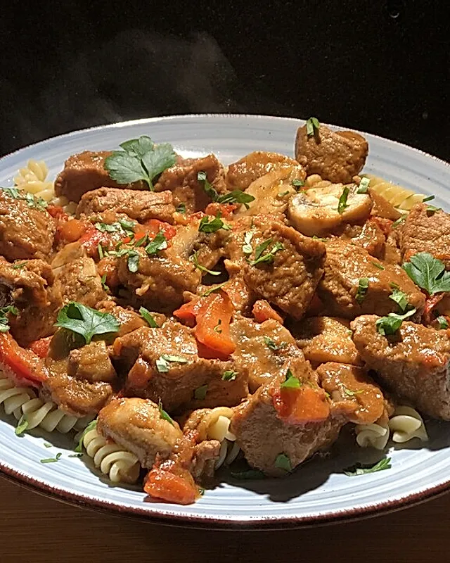 Ein kleiner Trick: Durch kurzes scharfes Anbraten entwickelt das Fleisch Röstaromen, die dem Gericht mehr Tiefe verleihen. Auch ein Schuss Rotwein, Worcestersauce oder Balsamico-Essig kann Wunder wirken.