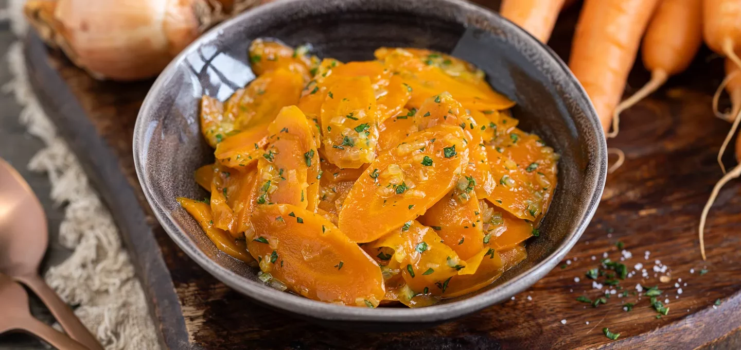 Der Klassiker schlechthin! Schneiden Sie 600 g Möhren in gleichmäßige Scheiben. Lassen Sie 30 g Butter in einem Topf schmelzen und schwitzen Sie eine fein gewürfelte Zwiebel darin glasig an. Geben Sie die Möhren hinzu, salzen Sie leicht und lassen Sie sie mit geschlossenem Deckel bei mittlerer Hitze etwa 15 Minuten in ihrem eigenen Saft garen. Zum Schluss mit frischer Petersilie, einem Spritzer Orangensaft und etwas Honig verfeinern. Die Möhren sollten außen weich sein, aber innen noch einen leichten Biss haben.