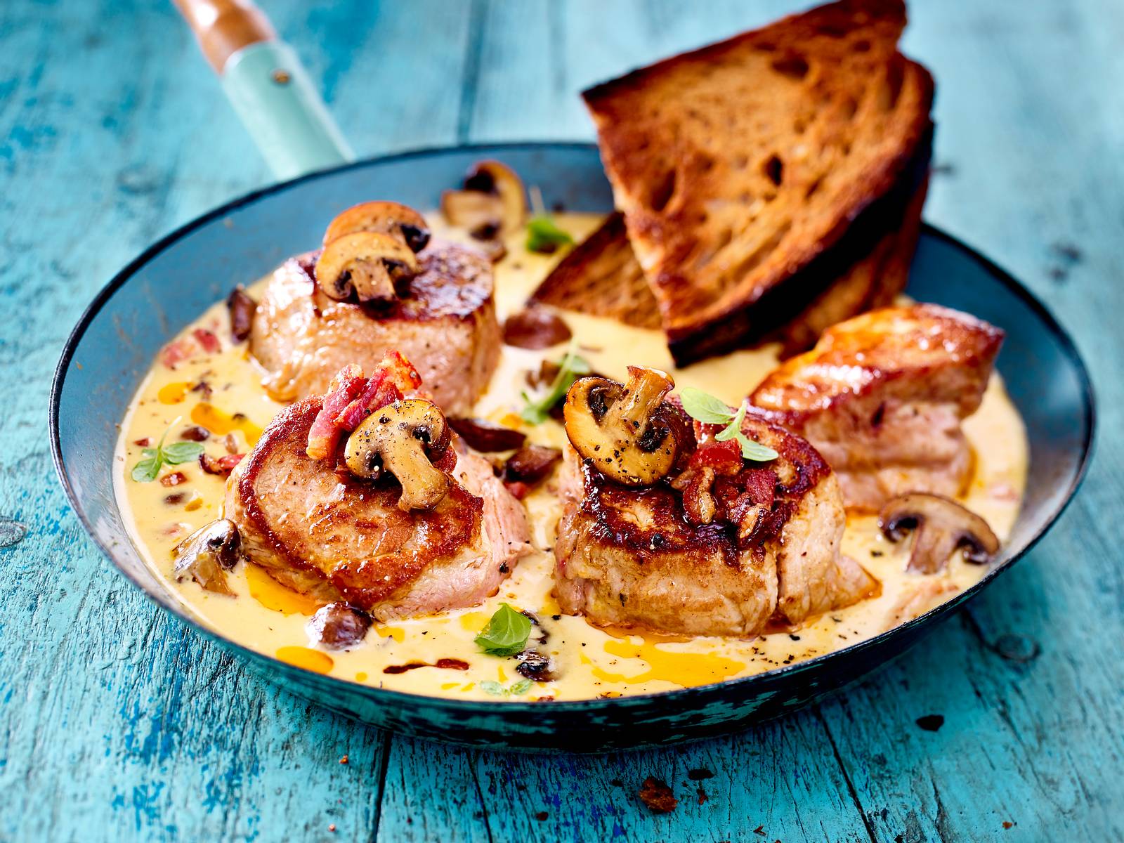 Schweinemedaillons sind der Inbegriff von zartem, edlem Schweinefleisch. Schneiden Sie das Filet in etwa 3-4 cm dicke Scheiben und klopfen Sie diese leicht flach. Würzen Sie die Medaillons mit Salz und Pfeffer und braten Sie sie in heißem Öl von jeder Seite 2-3 Minuten an. Nehmen Sie das Fleisch heraus und bereiten Sie in derselben Pfanne eine cremige Sauce aus Schalotten, Weißwein und Sahne zu. Verfeinern Sie die Soße mit frischen Kräutern wie Thymian oder Rosmarin. Die Medaillons passen hervorragend zu Bratkartoffeln oder Bandnudeln.