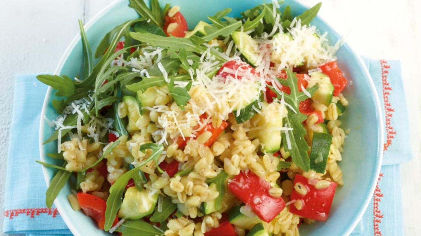 Zubereitung: Schneiden Sie das Gemüse klein und dünsten Sie es in Olivenöl an. Gießen Sie mit Brühe und Tomaten auf. Geben Sie die gekochten Weizenkörner hinzu und lassen Sie alles 15 Minuten köcheln. Mit Kräutern würzen und mit frisch geriebenem Parmesan servieren.